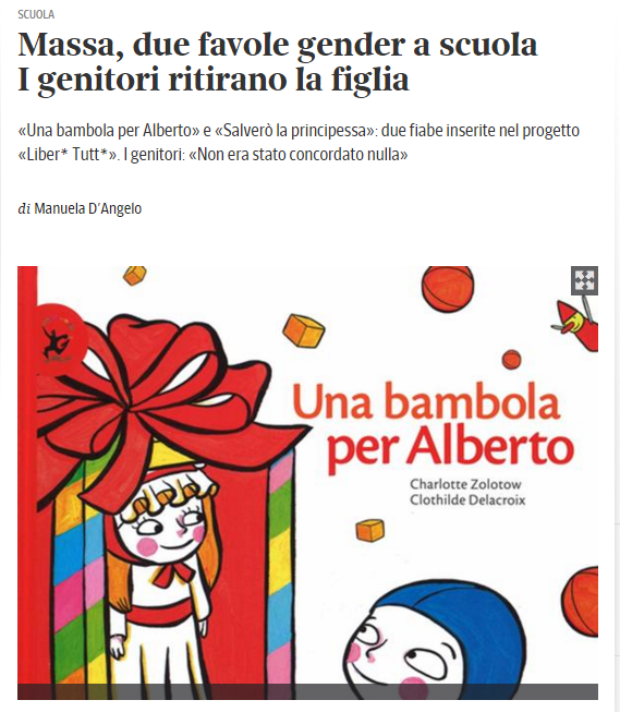 Oggetto: FAVOLE GENDER NELLE SCUOLE MASSA CARRARA
