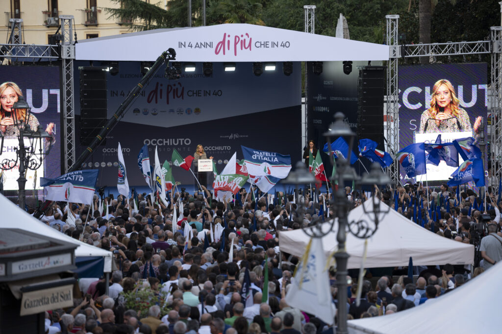 Mancano ormai pochi giorni alle elezioni regionali in Calabria, in programma domenica 5 e lunedì 6 ottobre prossimi. Una volata finale al candidato del centrodestra Roberto Occhiuto che ha visto i leader della coalizione raggiungere Lamezia Terme e salire sul palco in una piazza gremita di persone, bandiere ed entusiasmo. Oltre due ore di interventi (qui il video integrale dell’evento) che hanno visto alternarsi sul palco Antonio De Poli, Maurizio Lupi, Matteo Salvini e Antonio Tajani. Chiusura affidata al Presidente del Consiglio Giorgia Meloni: quaranta minuti a tutto campo, dal plauso al lavoro del presidente uscente e ricandidato Roberto Occhiuto, alla politica interna e alle delicate questioni internazionali. Un intervento (che potete rivedere cliccando qui) che ha acceso la piazza di Lamezia Terme e lanciato la volata verso l’appuntamento elettorale.