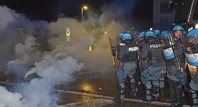 Hanno incendiato cassonetti. Le Forze dell’Ordine sono state costrette a rispondere con idranti e lacrimogeni per disperdere i facinorosi.