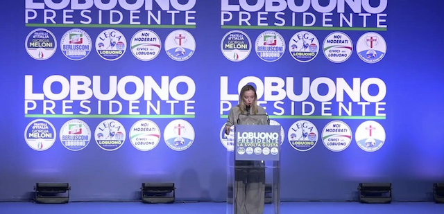 “Luigi Lobuono è un imprenditore di grande esperienza e competenza, ha saputo rilanciare una delle più grandi realtà economiche del Sud, la Fiera del Levante, e che sta mettendo al servizio della Puglia energie e capacità. Con coraggio e generosità si è messo a disposizione per una corsa difficile che non considera dall’esito scontato”, ha detto Giorgia Meloni a Bari, per l’evento clou della campagna elettorale del centrodestra in vista delle elezioni regionali in Puglia.