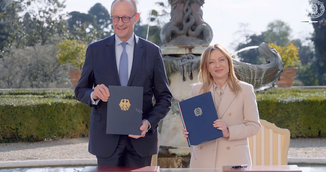 Prosegue il grande lavoro diplomatico di Giorgia Meloni che, dopo la missione in Asia, ha tenuto un vertice a Villa Pamphili con il cancelliere tedesco Friedrich Merz. È stato firmato il Piano d’Azione che vedrà Italia e Germania impegnate insieme sui principali dossier europei per rilanciare la cooperazione tra i nostri due Paesi.