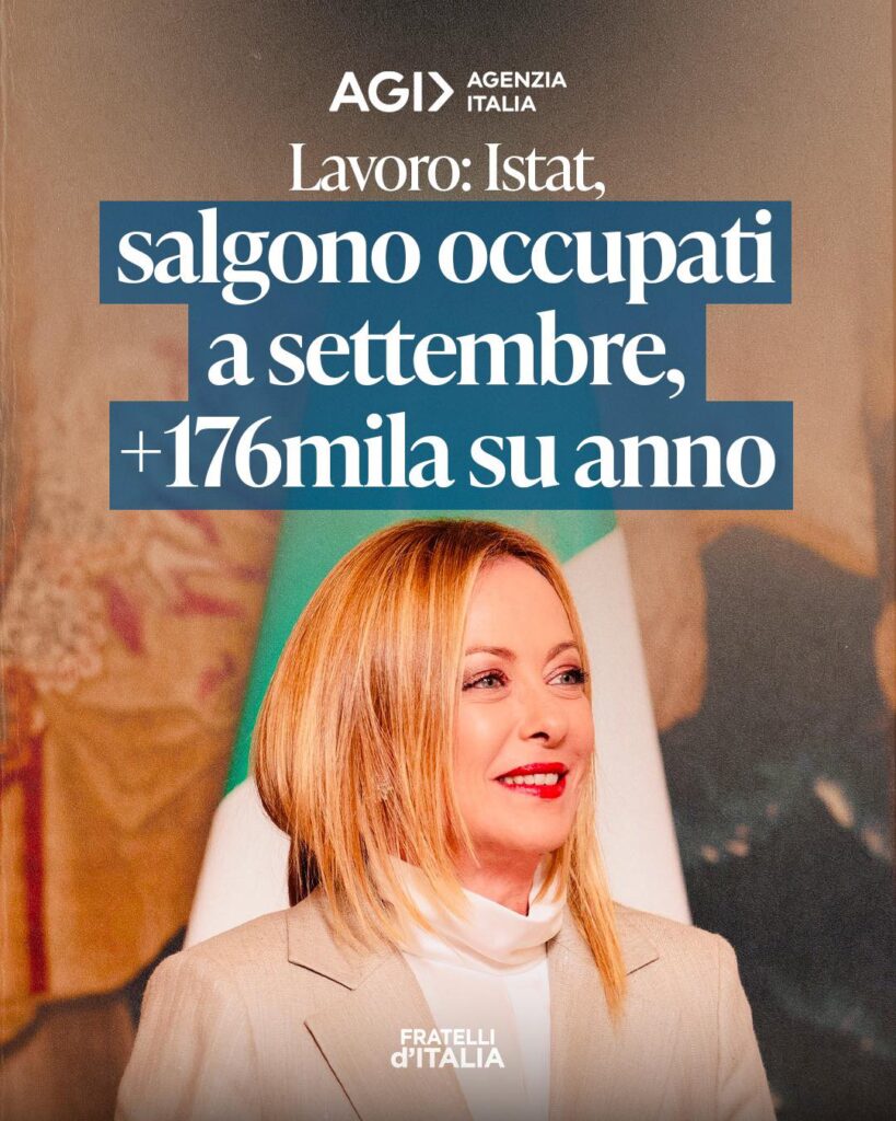 L’Italia torna a crescere: il numero degli occupati ha raggiunto il livello più alto mai registrato, con oltre 24 milioni di persone al lavoro. E ad aumentare sono i posti di lavoro permanente a fronte di una diminuzione dei contratti a termine. È un segnale che conferma la solidità delle politiche del governo Meloni e la fiducia che famiglie e imprese stanno ritrovando. Il nostro Esecutivo non insegue il consenso con promesse facili, bonus o mancette elettorali, ma è tornato a costruire il futuro con serietà e visione.